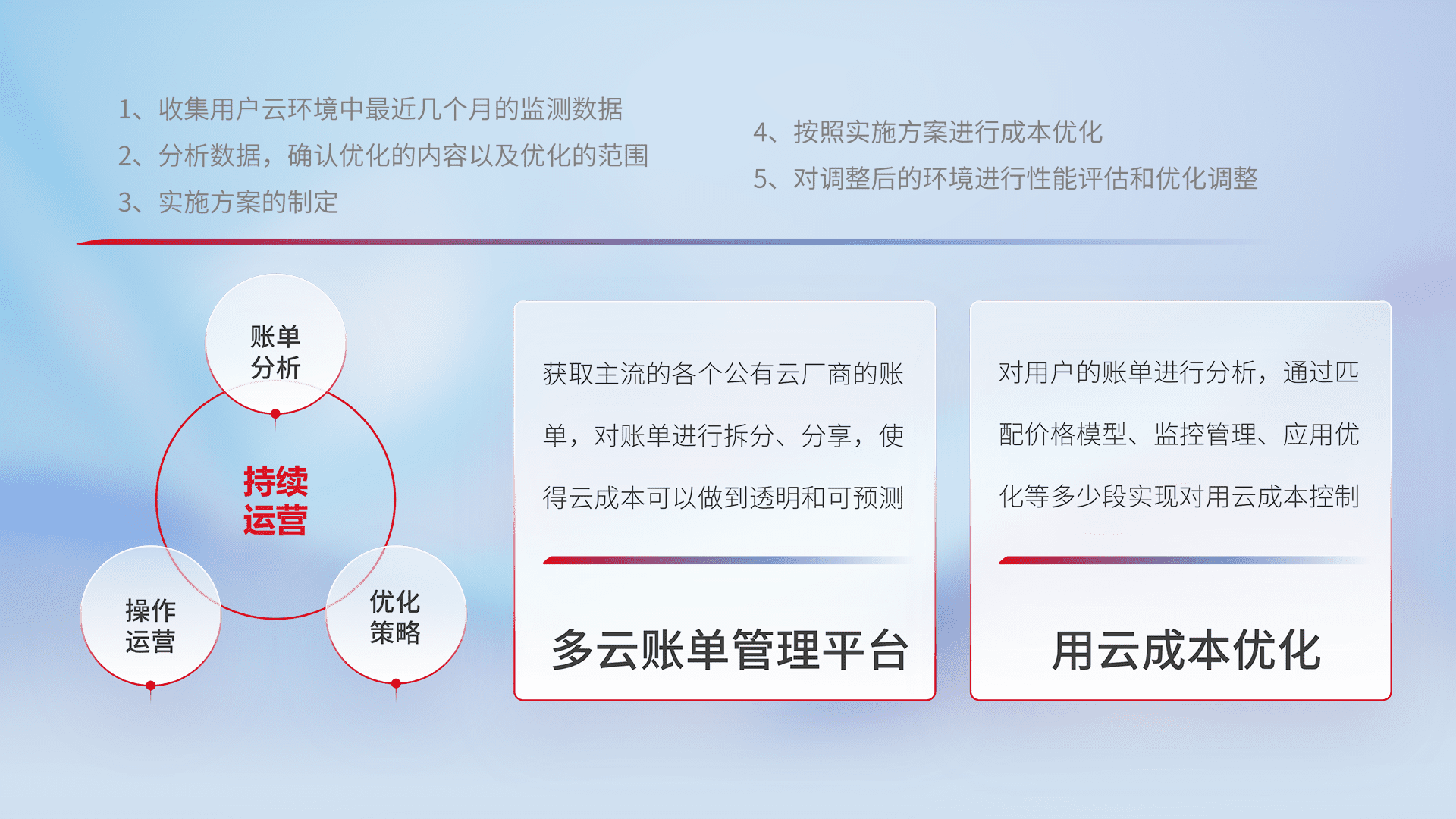 监控业务系统资源开销,,对资源的消耗精确计量,,,实现费用的透明化管理,,,,不断提升资源使用率,,调整资源购买方式,,,,降低资源费用成本,,,用云成本可预测、、、用云费用可优化,,云资源配额有据可依。。